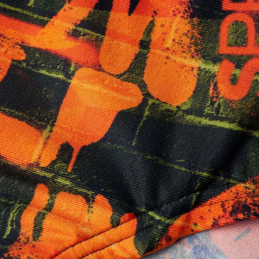 Libérez votre côté rebelle en chassant les PB en portant notre slip lumineux de 17 cm avec son imprimé orange sur noir inspiré des graffitis.