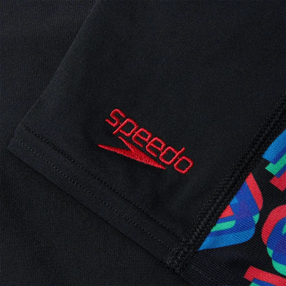 Plongez, plongez et entraînez-vous dans cet élégant Jammer noir, avec des panneaux latéraux accrocheurs de notre imprimé de lettres mélangées.
